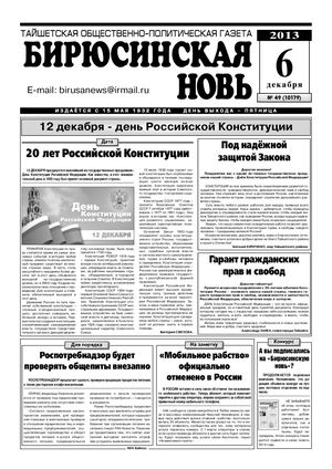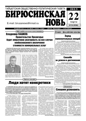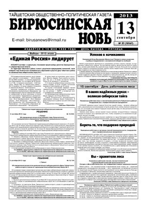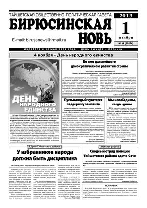 Бирюсинская новь, 2013 год