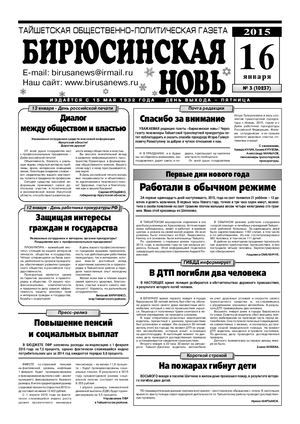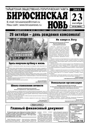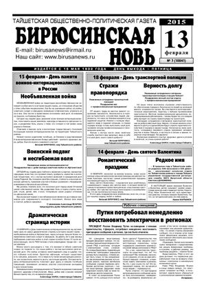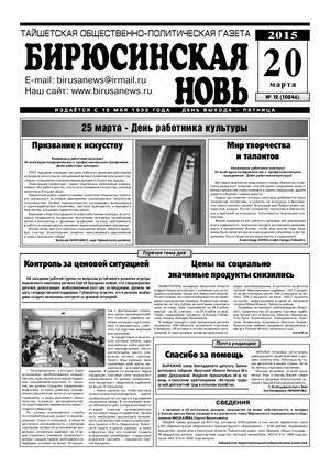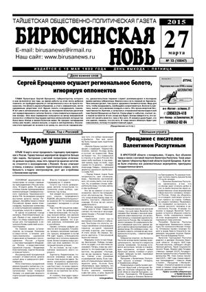 Бирюсинская новь, 2015 год