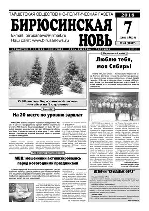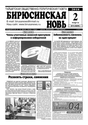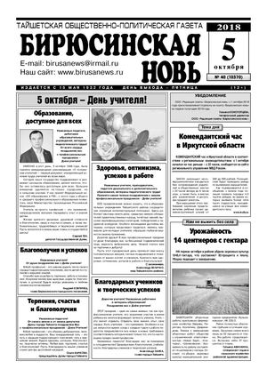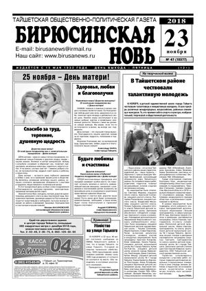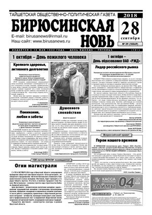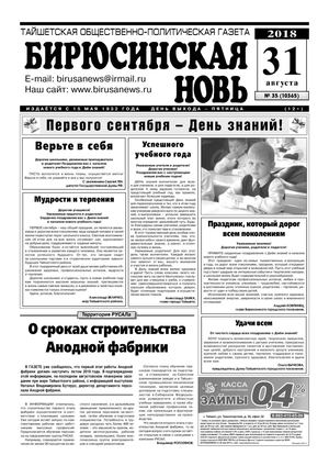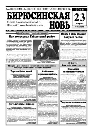 Бирюсинская новь, 2018 год