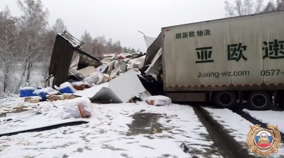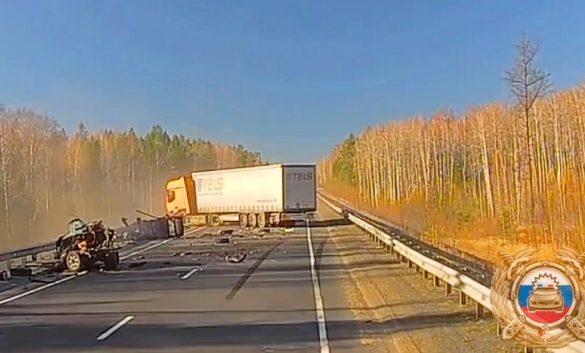 На трассе в Иркутской области столкнулись четыре фуры, два водителя погибли