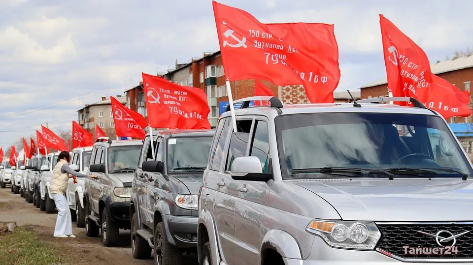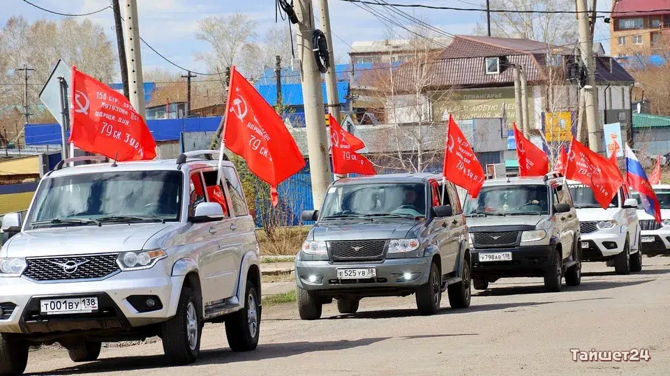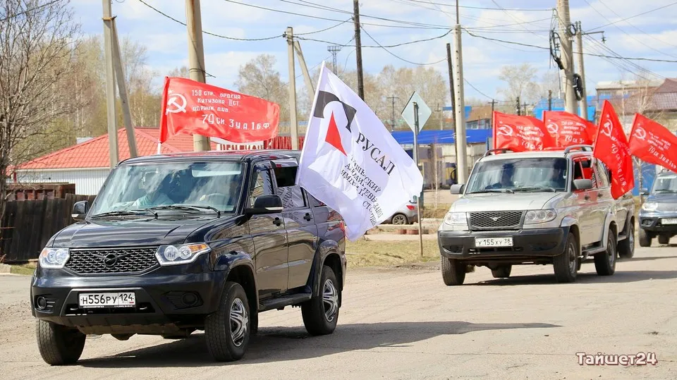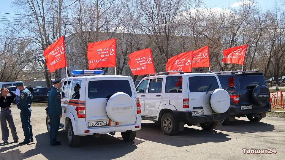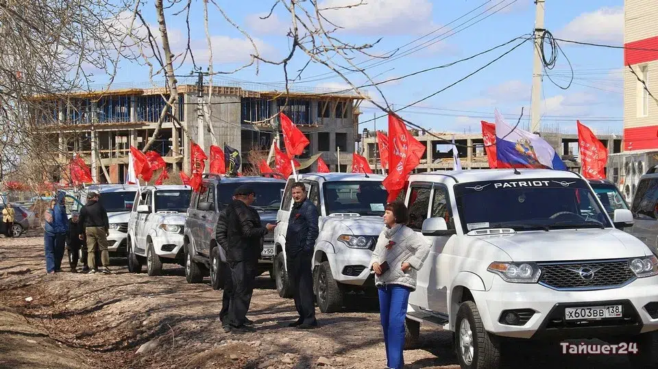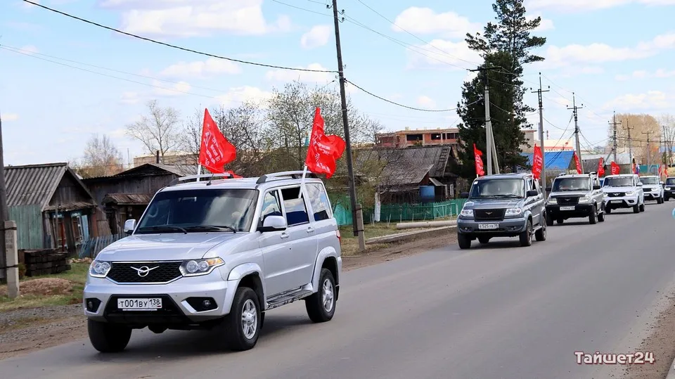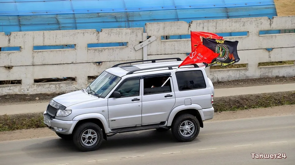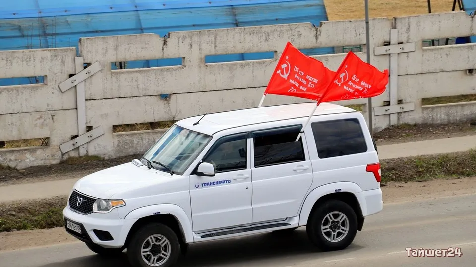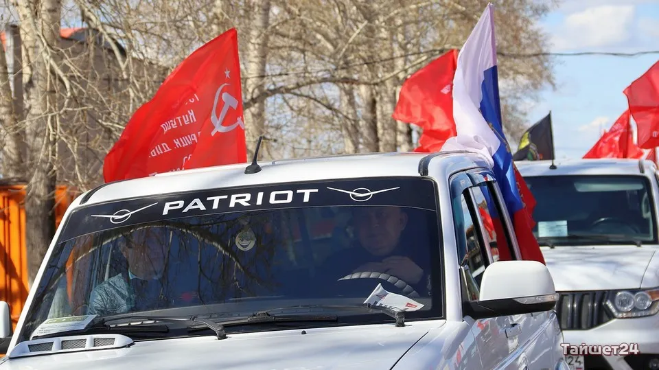 Автомобили УАЗ Патриот провезли по улицам Тайшета 80 Знамён Победы