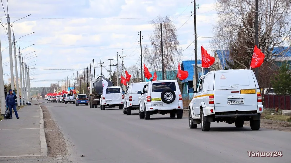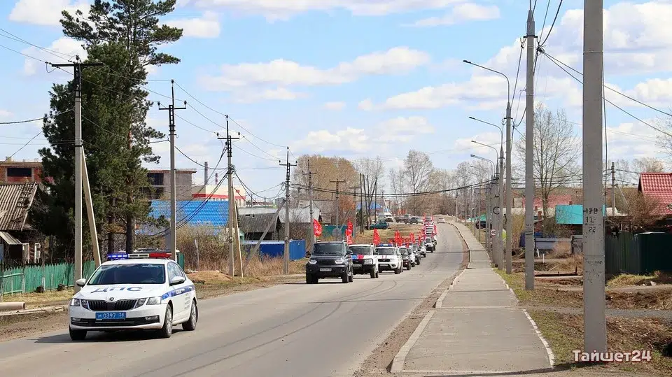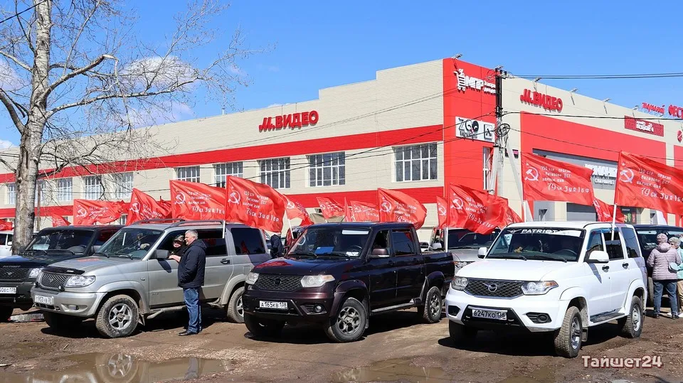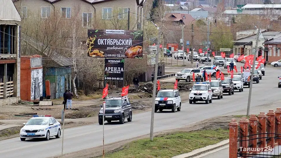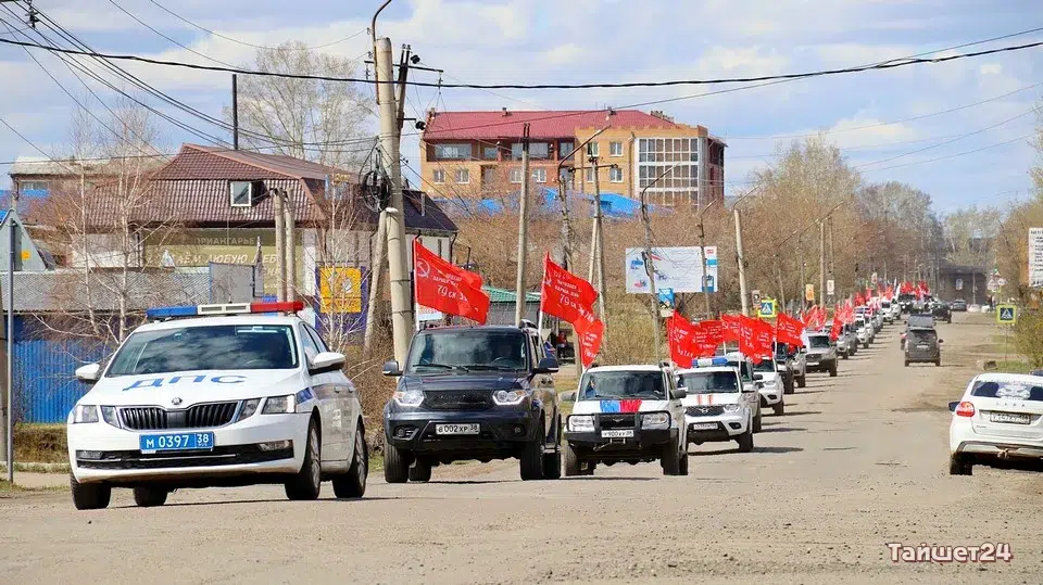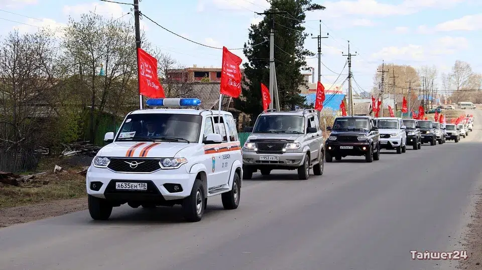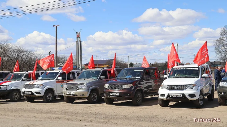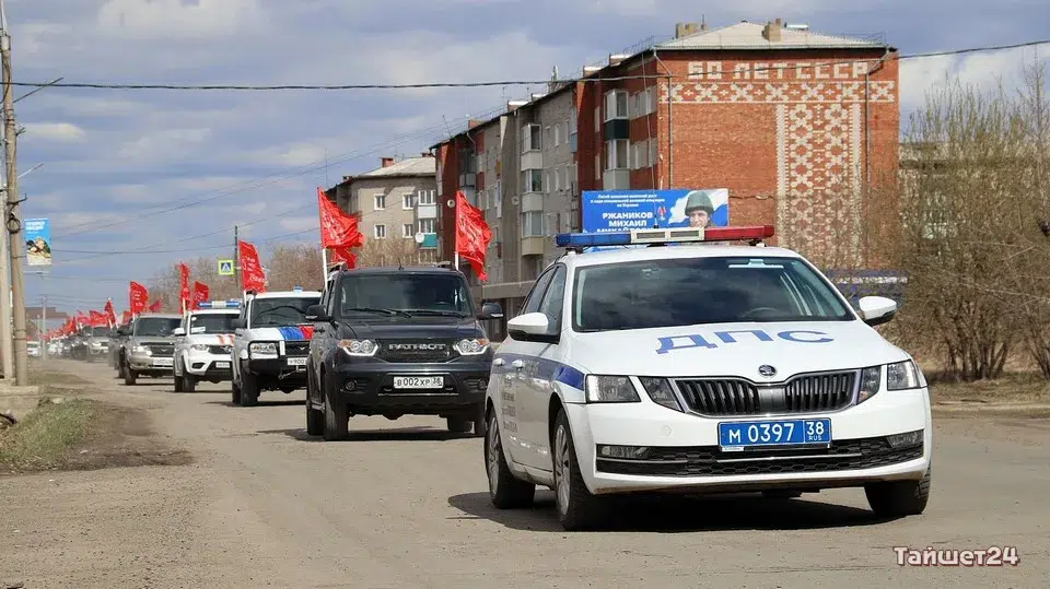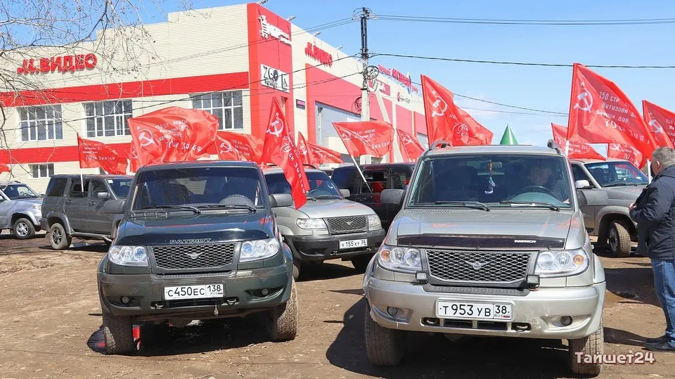 Автомобили УАЗ Патриот провезли по улицам Тайшета 80 Знамён Победы