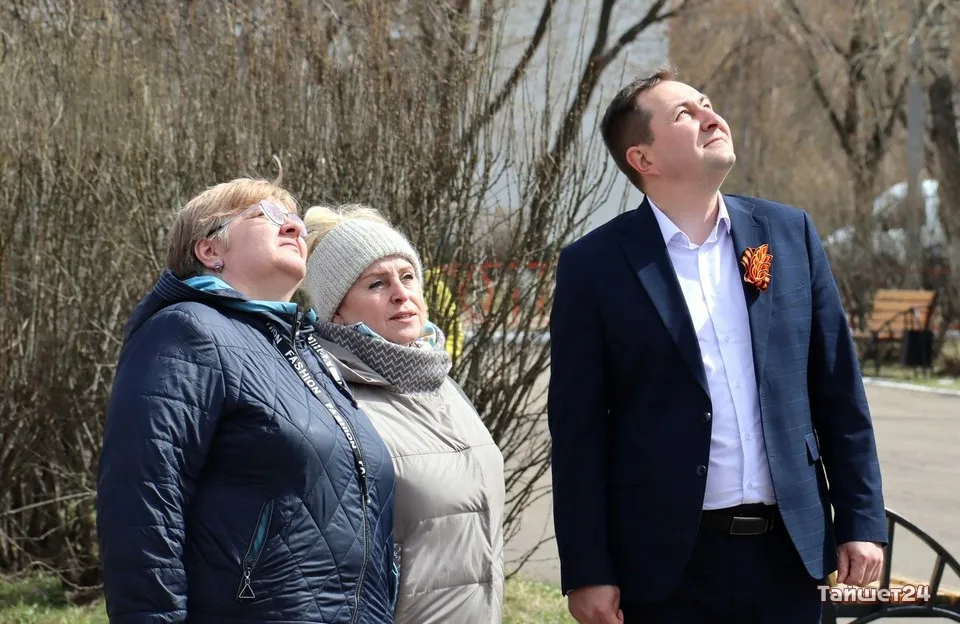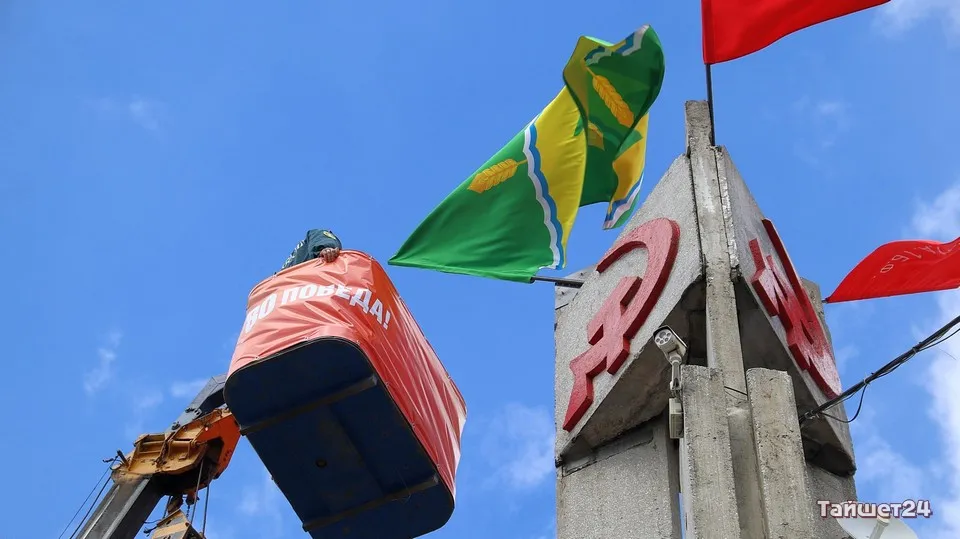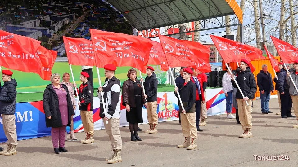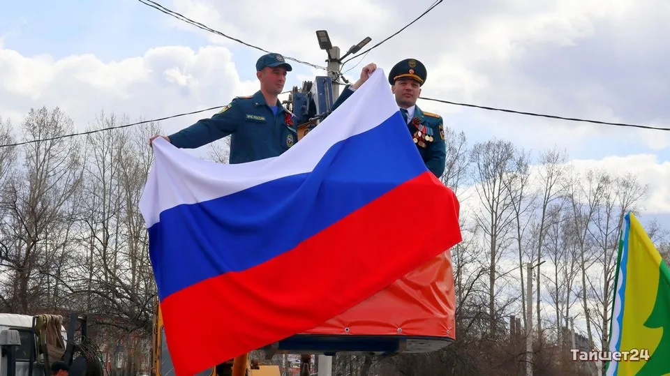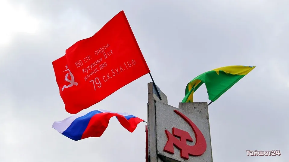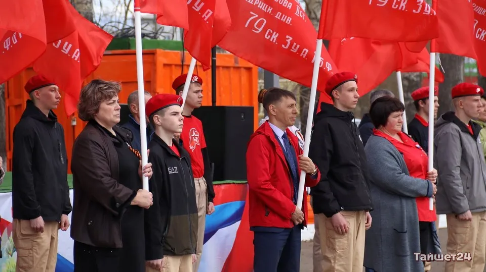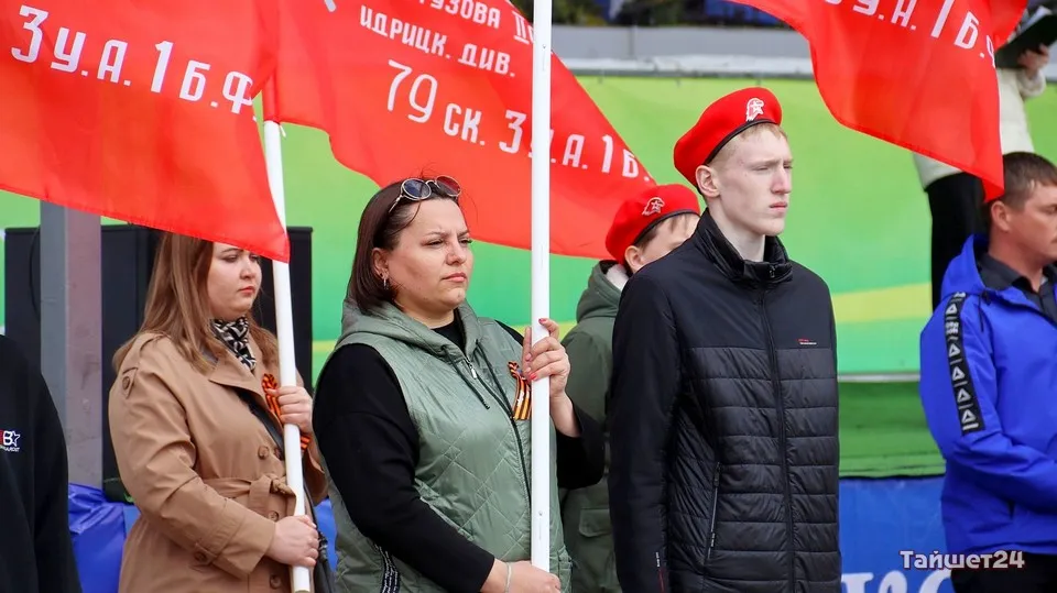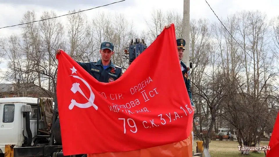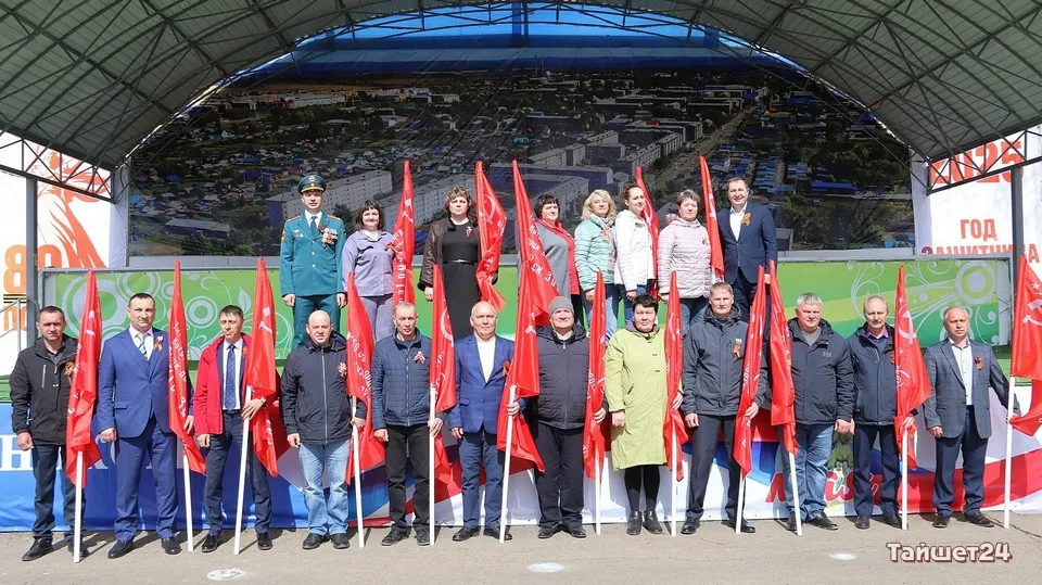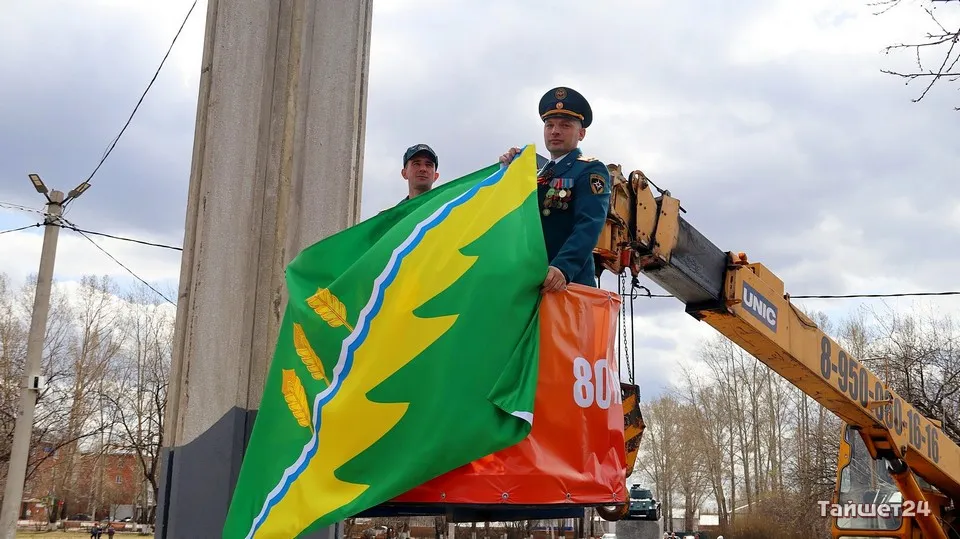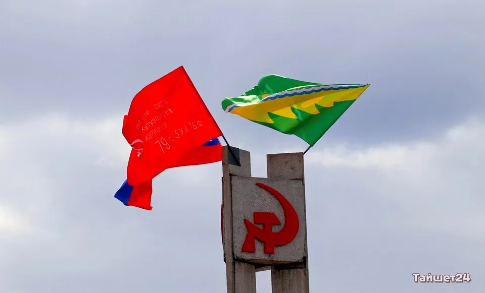 И ещё одно знаковое событие произошло на площади Юбилейной – торжественное водружение Знамени Победы, флага России и флага Тайшетского района.