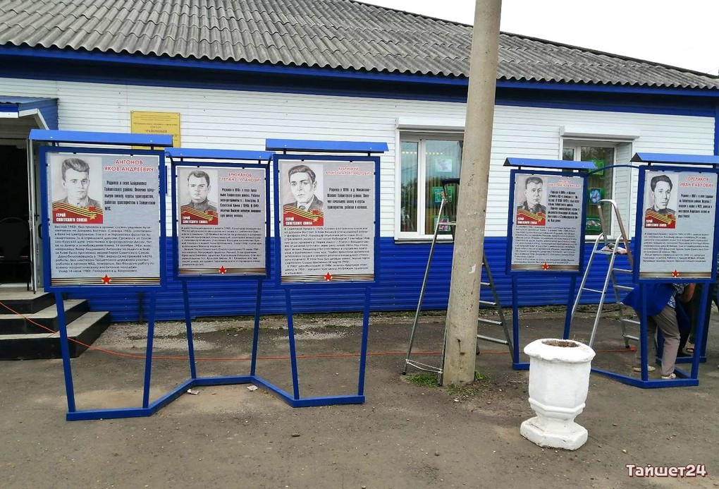 На территории районного краеведческого музея в Тайшете установлена аллея Героев Советского Союза. Это памятные баннеры с именами и фотографиями наших земляков.