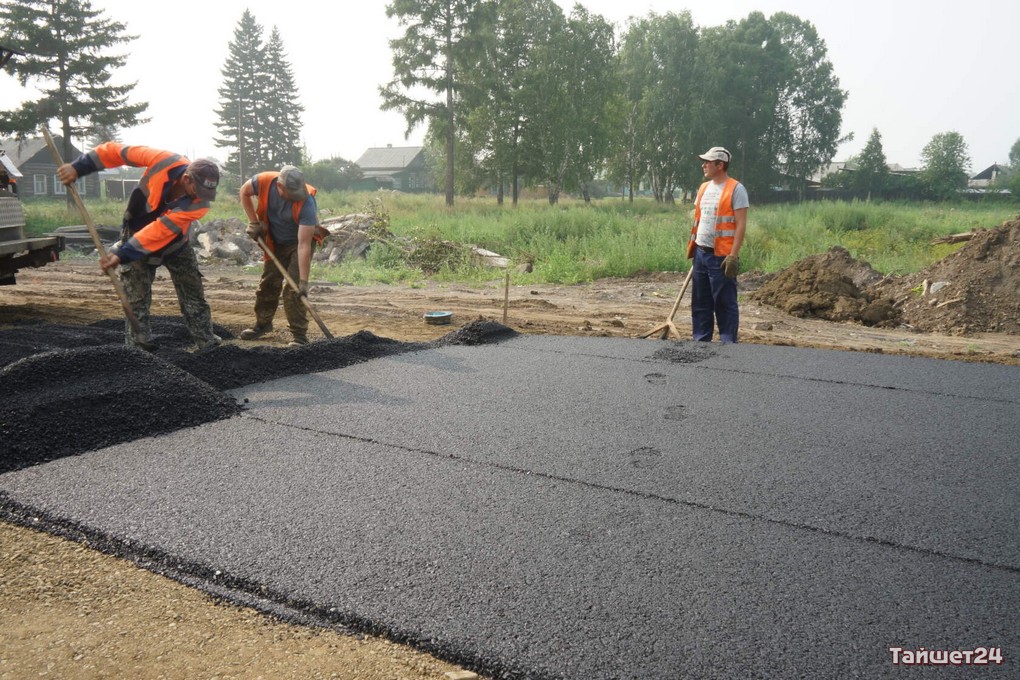 Площадку будущего физкультурно-оздоровительного комплекса открытого типа на улице Первомайской в Тайшете начали асфальтировать.