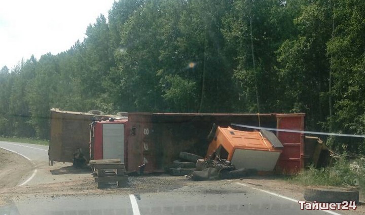 На «тёщином языке» в Тайшетском районе перевернулась фура