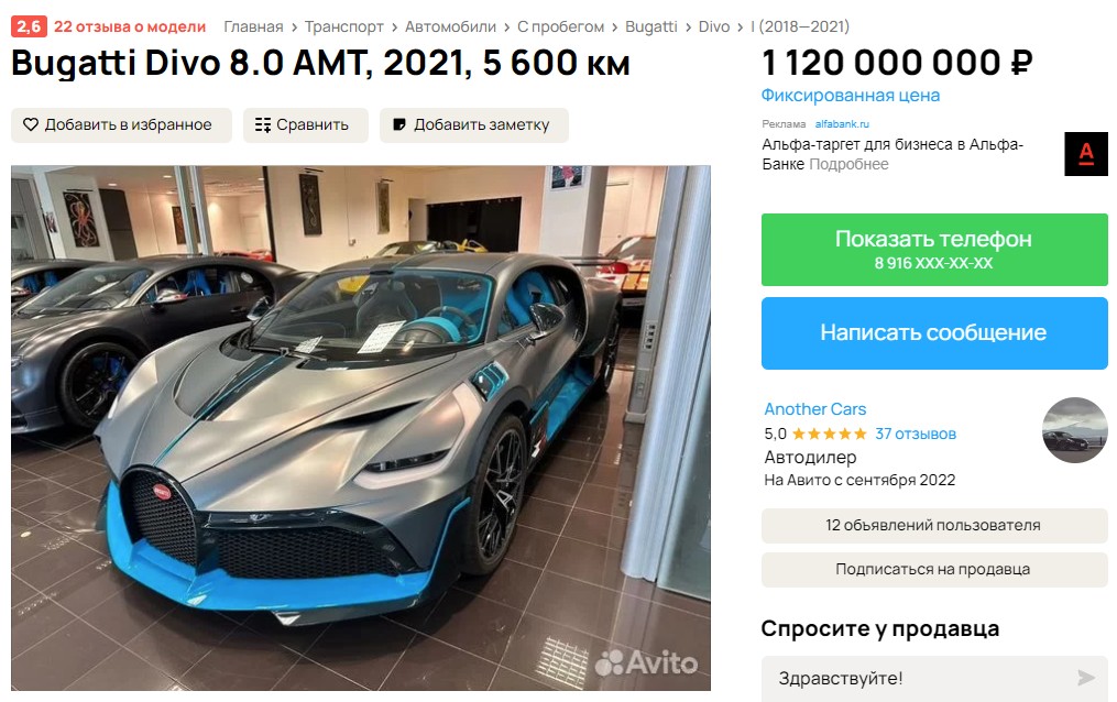 Автор объявления буквально утверждает, что предлагаемая цена вполне себе нормальная, потому как покупка Вugatti именно у него позволит сэкономить до 30% в отличии от стоимости авто в РФ.
