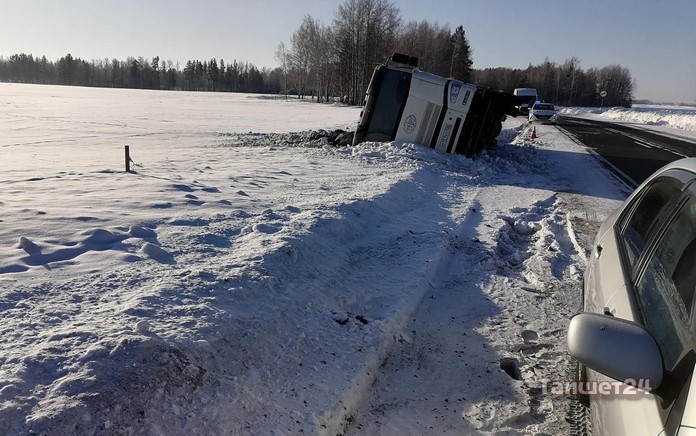 В субботу, 11 февраля, на автодороге «Тайшет-Шелаево» водитель грузового автомобиля умудрился опрокинуть своё транспортное средство.