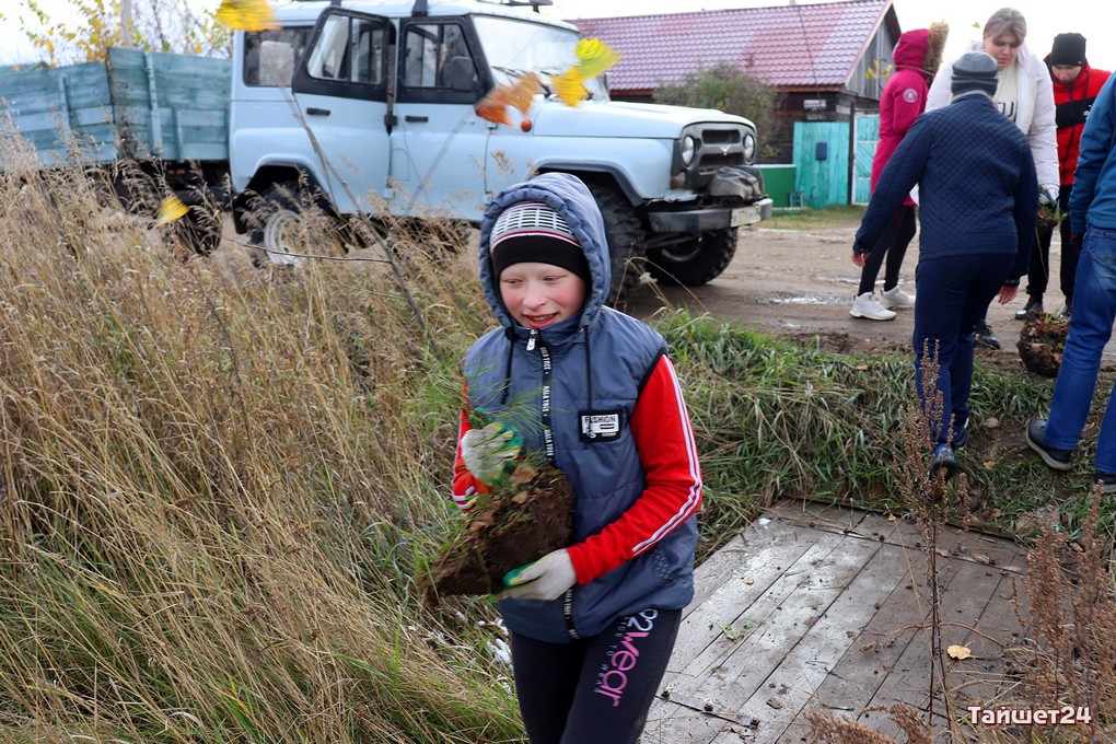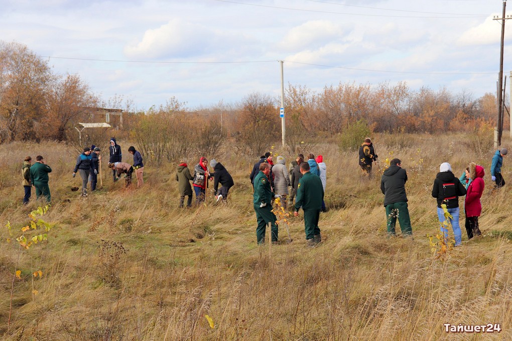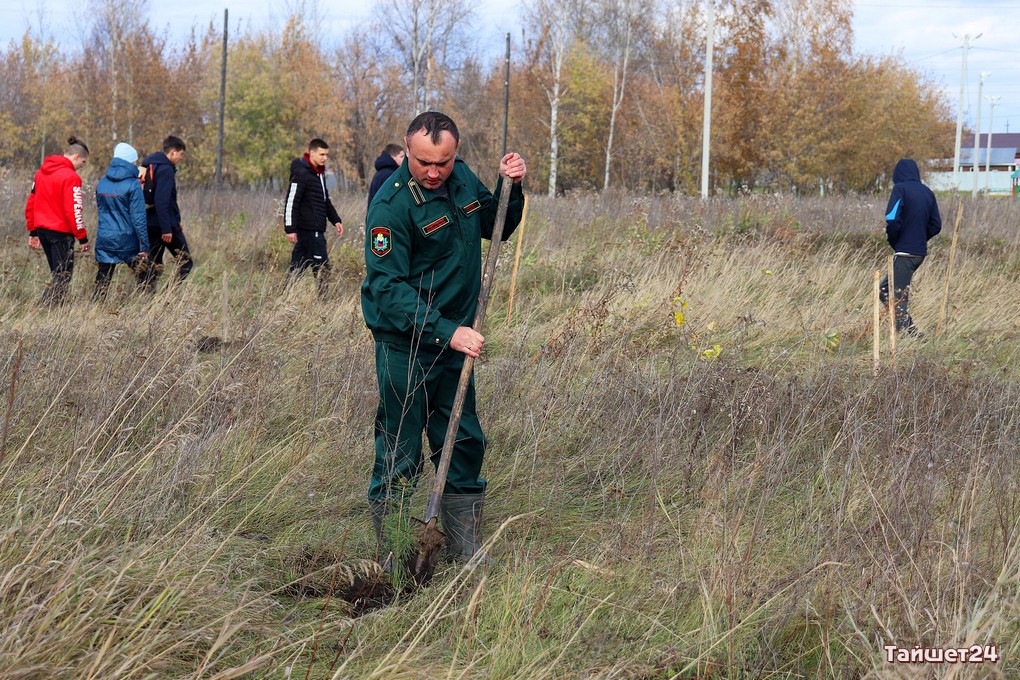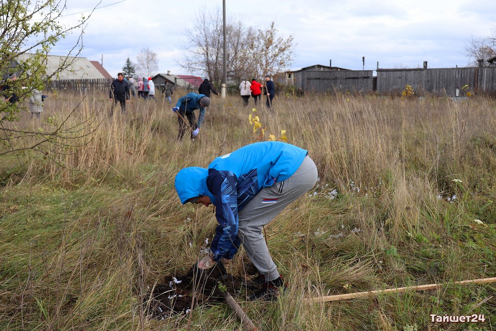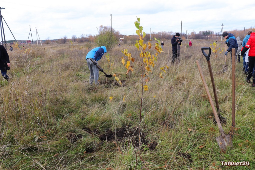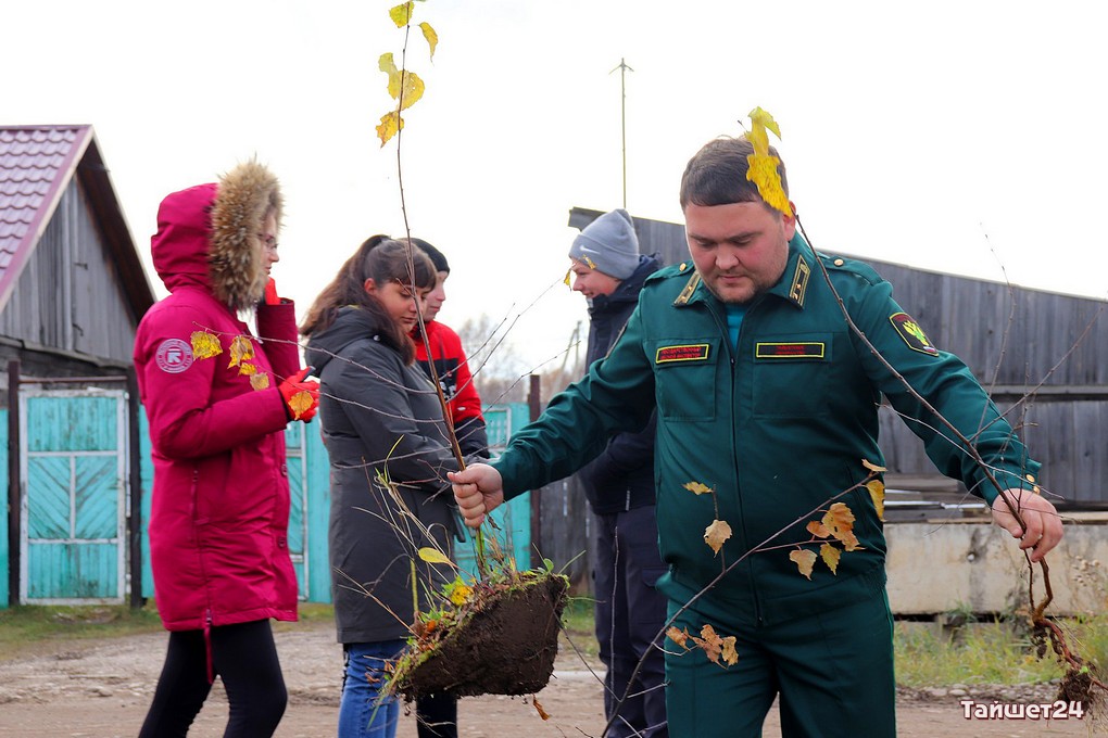 Планировалось высадить 75 саженцев — по количеству «победных» лет, но, по словам руководителя Тайшетского лесничества Александра Королькова, «привезли сто саженцев берёзы, и все намерены высадить. Это место выбрано неслучайно. Уже давно бывшие наши работники – нынешние пенсионеры хотели здесь посадить берёзовую рощу, чтобы памятник не стоял на голом месте».