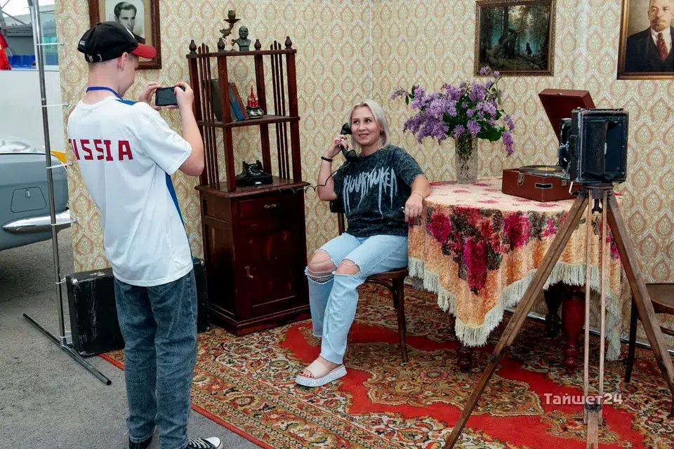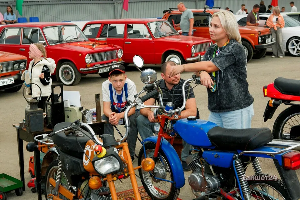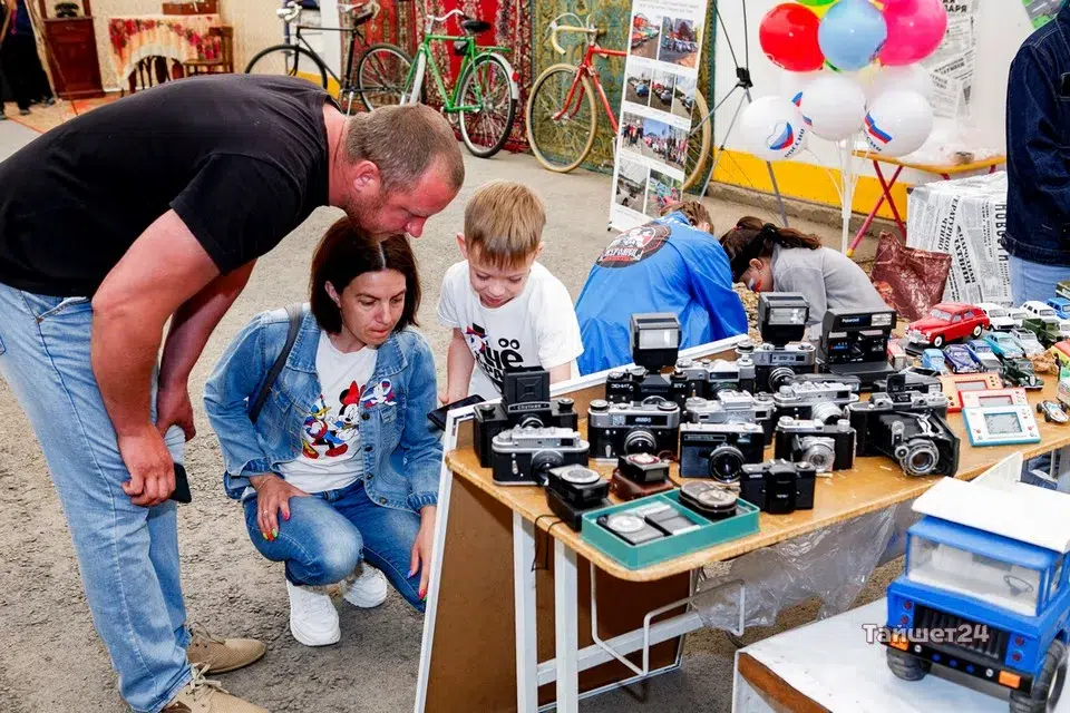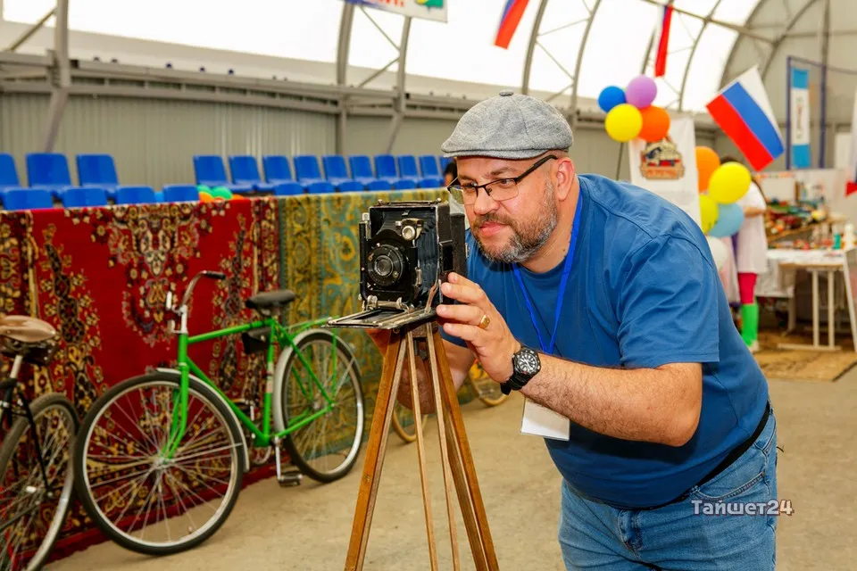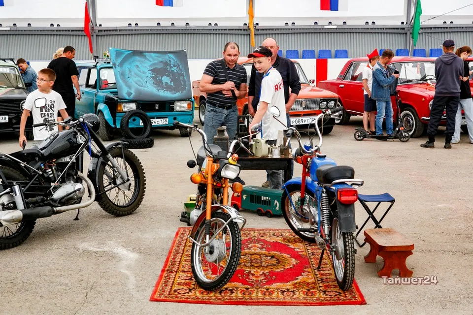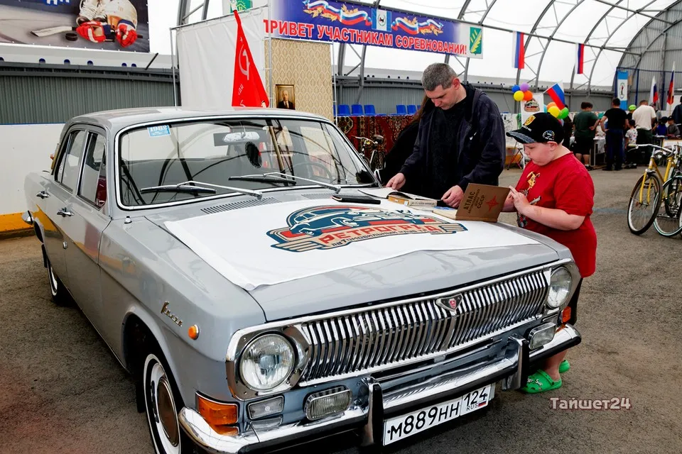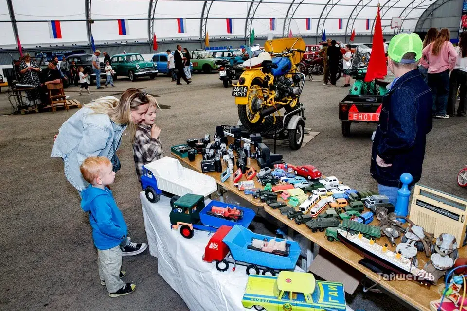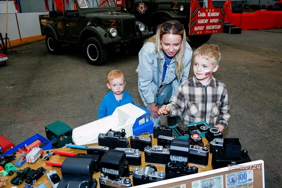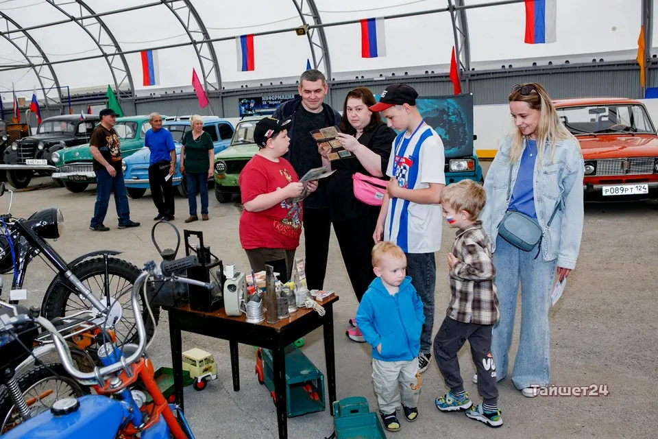 В Бирюсинске сегодня развернули самый настоящий музей ретротехники — и не только автомобильной. Под сводами спортивного центра оборудовали целый музейный уголок в классическом стиле, возле которого выстроилась очередь желающих сделать памятные снимки.
