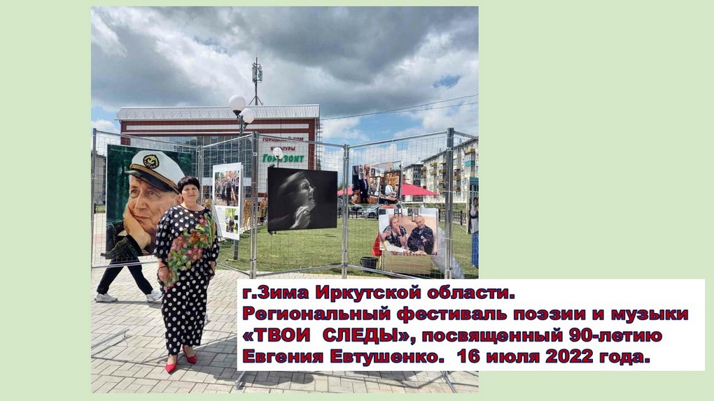 В 2022 году поэту Евгению Евтушенко исполнилось бы 90 лет. По этому поводу администрация Зимы организовала фестиваль поэзии и музыки «Твои следы». Участие в нём приняли бирюсинцы.