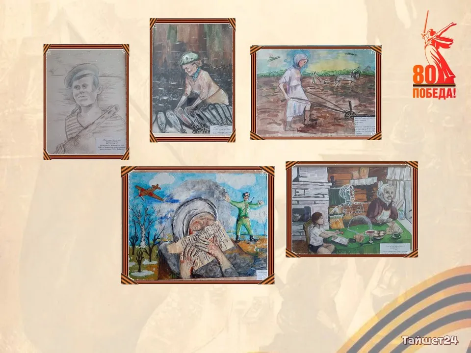 На выставке были представлены творческие работы детей всех возрастных групп из Тайшета и Бирюсинска, Нижней Заимки и Старого Акульшета. Более 20 работ воспитанников специальной школы-интерната №19 Тайшета. Огромный интерес вызвали картины «Труд в тылу», «Всё для Родины! Всё для фронта», «Сын полка», «Последний бой», «Комиссары не сдаются», «Маленькие герои большой войны», «Мы помним! Мы гордимся!» и другие.