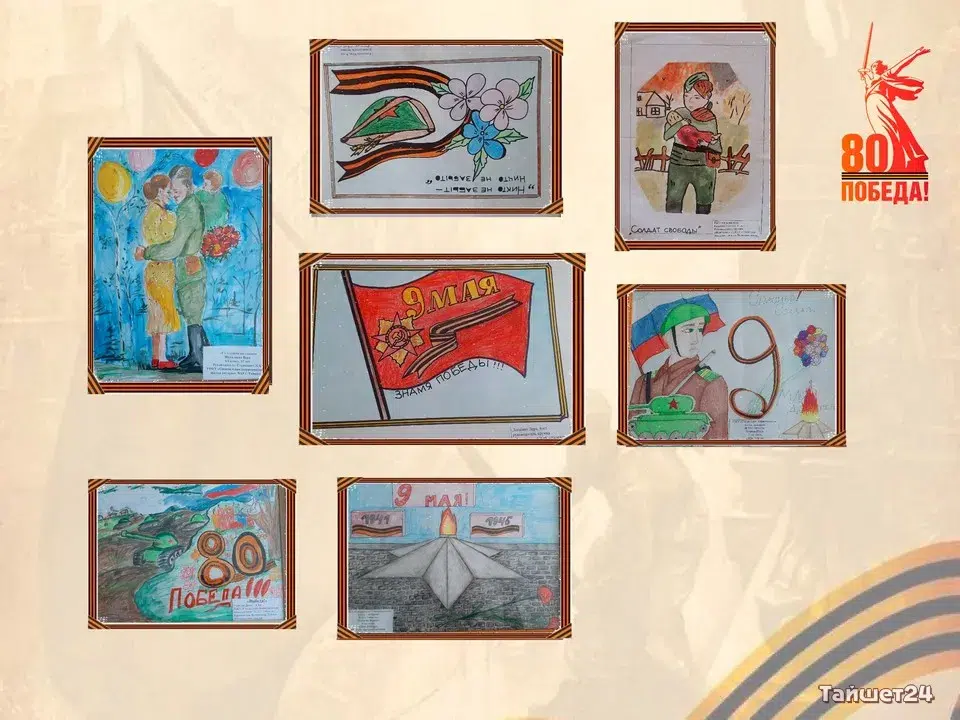 Более 40 любительских работ, отражающих события Великой Отечественной войны, было представлено на районной выставке детского рисунка, посвященной 80-летию Великой Победы в Доме культуры «Юбилейный».