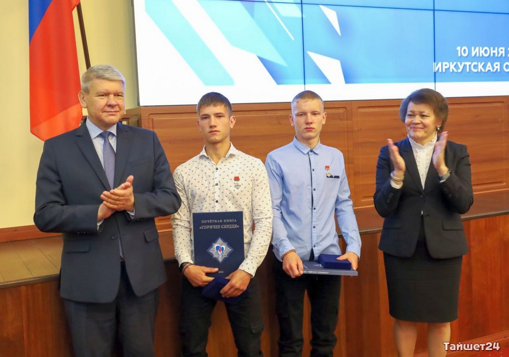 Владимиру и Даниилу Левшиным из посёлка Шиткино Тайшетского района вручили нагрудные знаки за проявленные во время пожара смелость и отвагу.