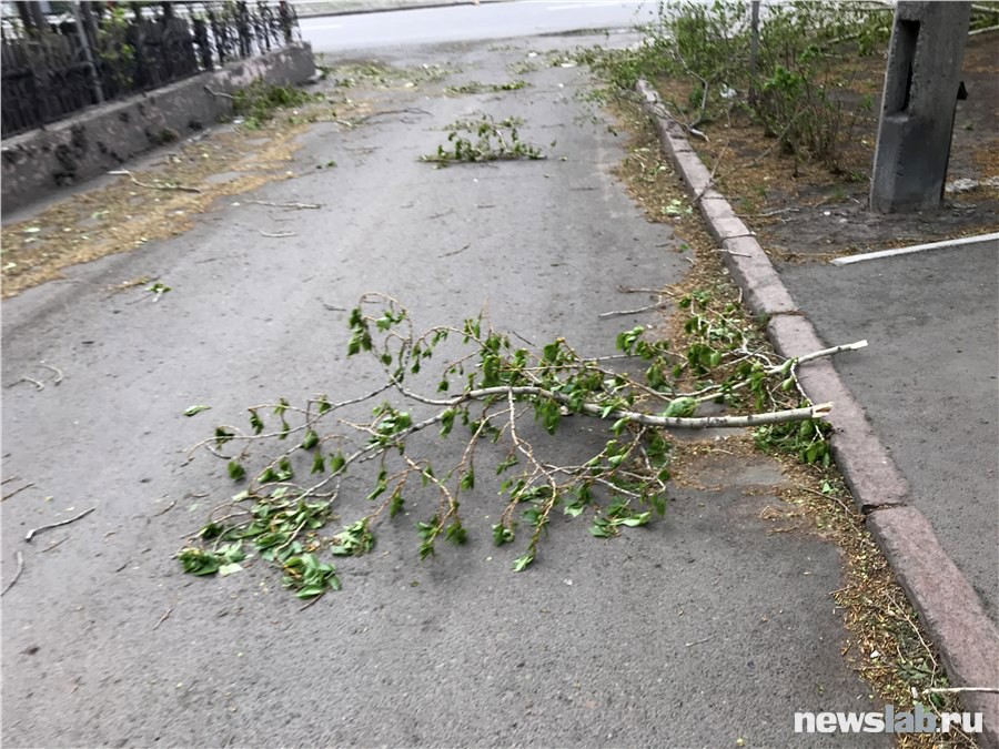 Жители сообщают, что в некоторых районах города ветер оборвал провода и рекламные вывески, повалил деревья и строительные заборы, в том числе на припаркованные автомобили.
