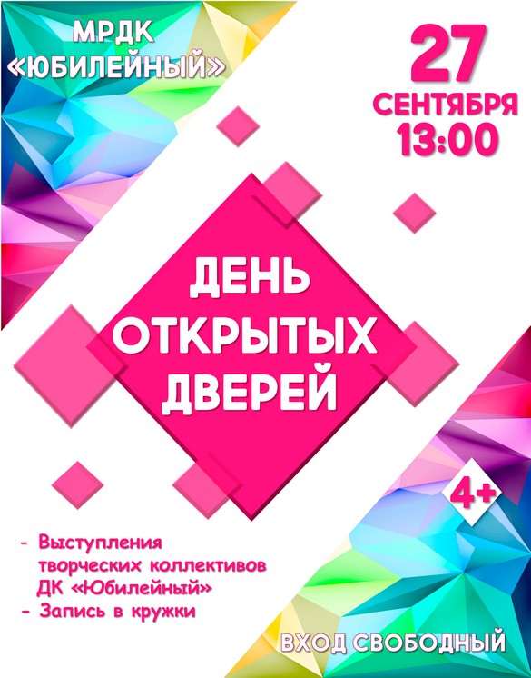 Дом культуры «Юбилейный» 27 сентября в 13:00 приглашает на День открытых дверей (4+).