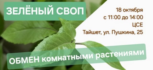 В Центре спортивных единоборств «Сокол» в Тайшете (Пушкина, 25) 18 октября пройдёт зелёный своп — обмен…