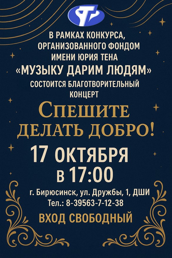 Благотворительный концерт «Спешите делать добро!» состоится 17 октября в 17:00 в Детской школе искусств города Бирюсинска.…