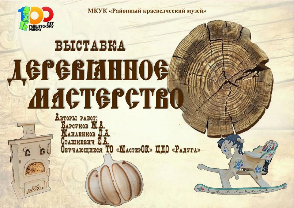 В Районном краеведческом музее в Тайшете открылась выставка «Деревянное искусство». Здесь представлены работы в разных техниках:…