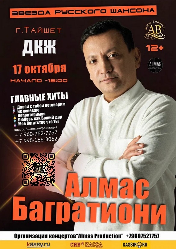 17 октября известный исполнитель Алмас Багратиони снова в Тайшете!