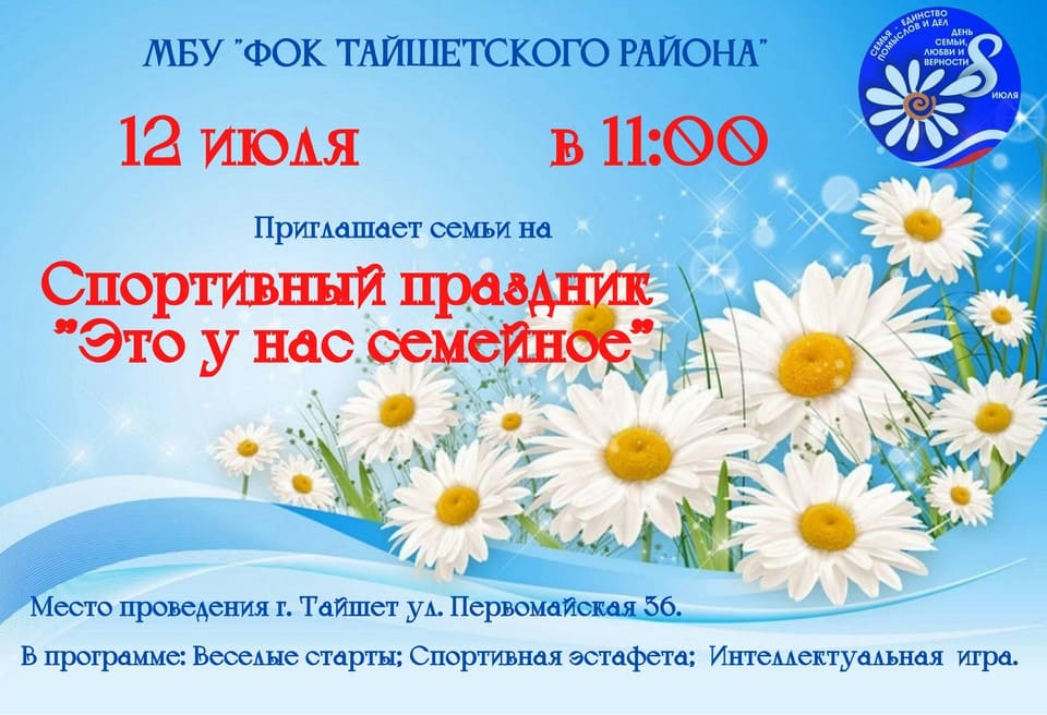 12 июля на территории физкультурно-оздоровительного комплекса в Тайшете в рамках празднования Дня семьи, любви и верности…