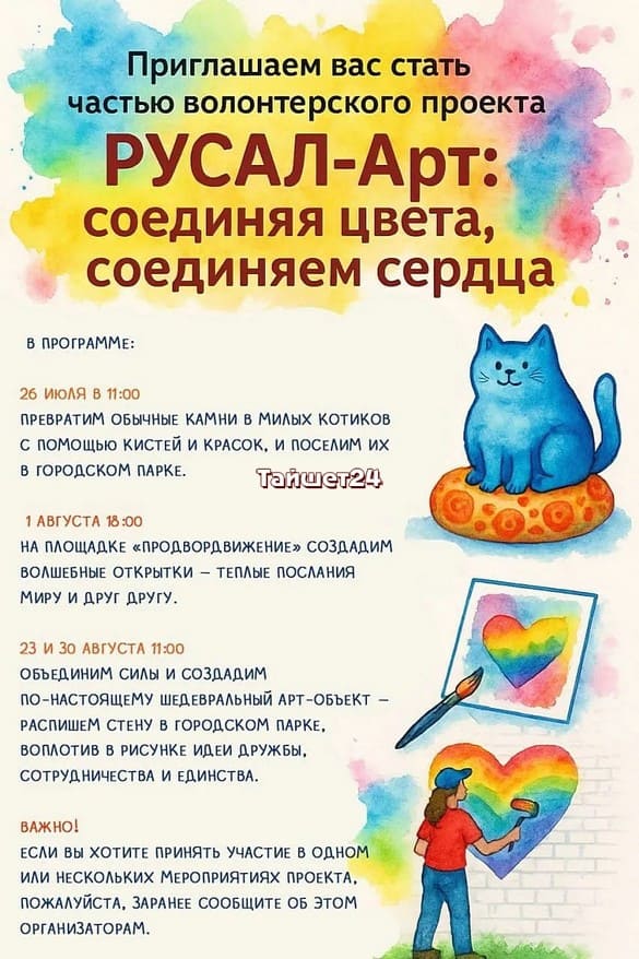 Жителей Тайшета приглашают присоединиться к волонтёрскому проекту «РУСАЛ-Арт: соединяя цвета, соединяем сердца».