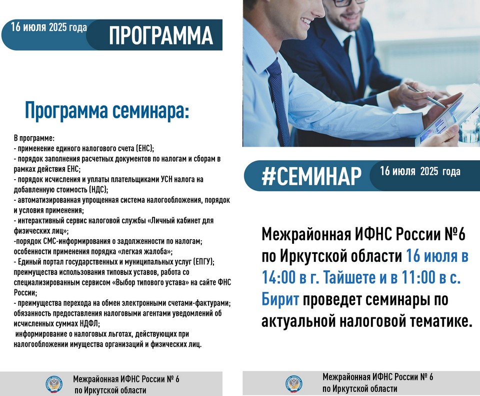 В Тайшете 16 июля в 14:00 начнётся семинар по актуальной налоговой тематике.