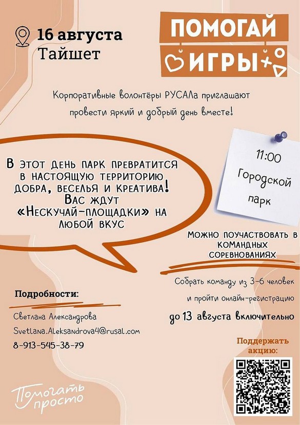 «Помогай-игры» объединят тайшетцев 16 августа ради добрых дел (0+)