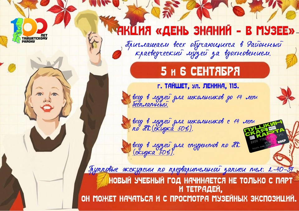 Краеведческий музей в Тайшете приглашает 5-6 сентября на акцию «День знаний» (6+)