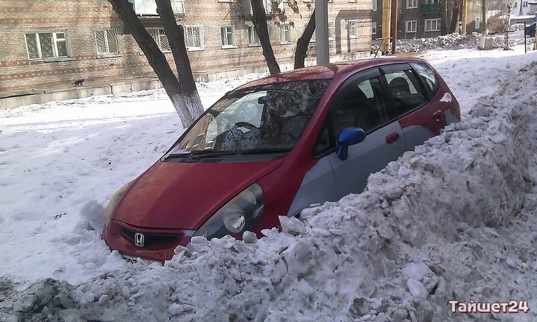 Снегоуборочная машина завалила в Тайшете «Хонду Фит»