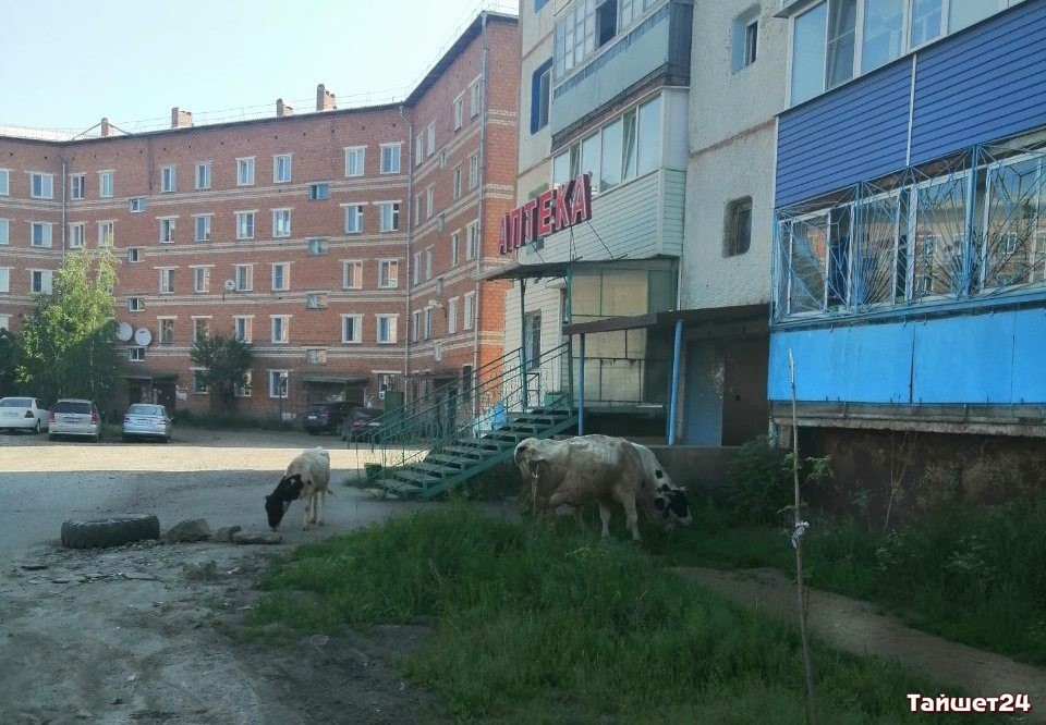 Фотофакт. Тайшетские коровки доедают последнюю траву в городских микрорайонах