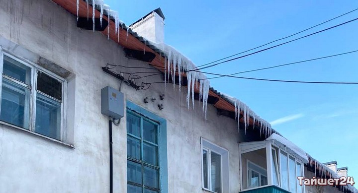 Тёплая погода устроила для жителей Тайшета неприятный сюрприз. Над головами горожан угрожающе нависли сосульки.