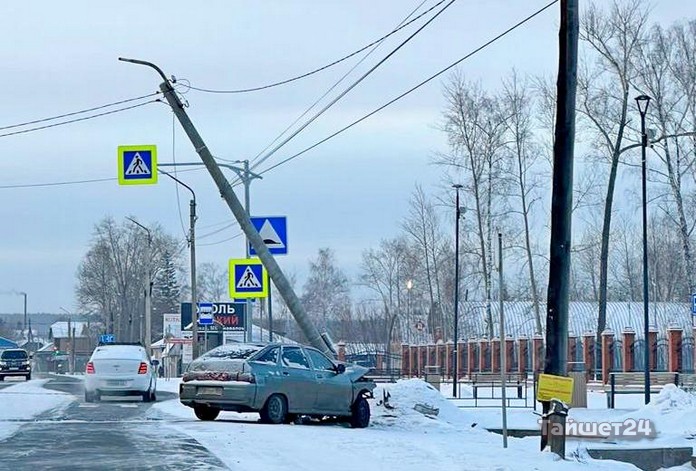 Фотофакт. В Тайшете автомобиль врезался в опору ЛЭП