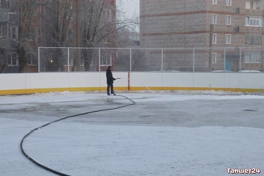 Рабочие в Тайшете приступили к заливке городского катка, который по традиции развернётся на хоккейном корте во…