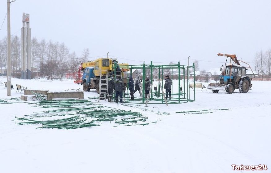 Фотофакт. В Тайшете устанавливают главную ёлку