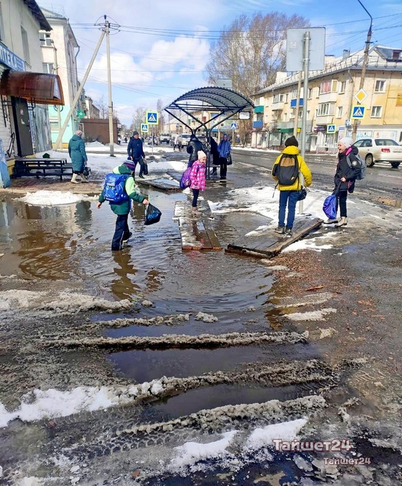 Тротуары в Тайшете утопают в лужах