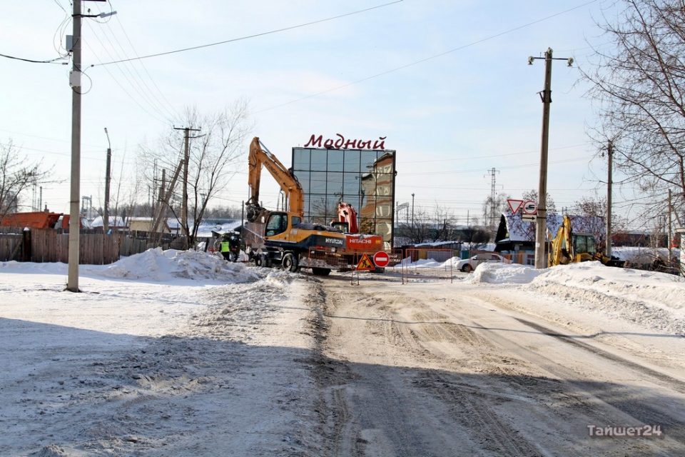В Тайшете перекрыли для транспорта улицу Горького: строят коллектор