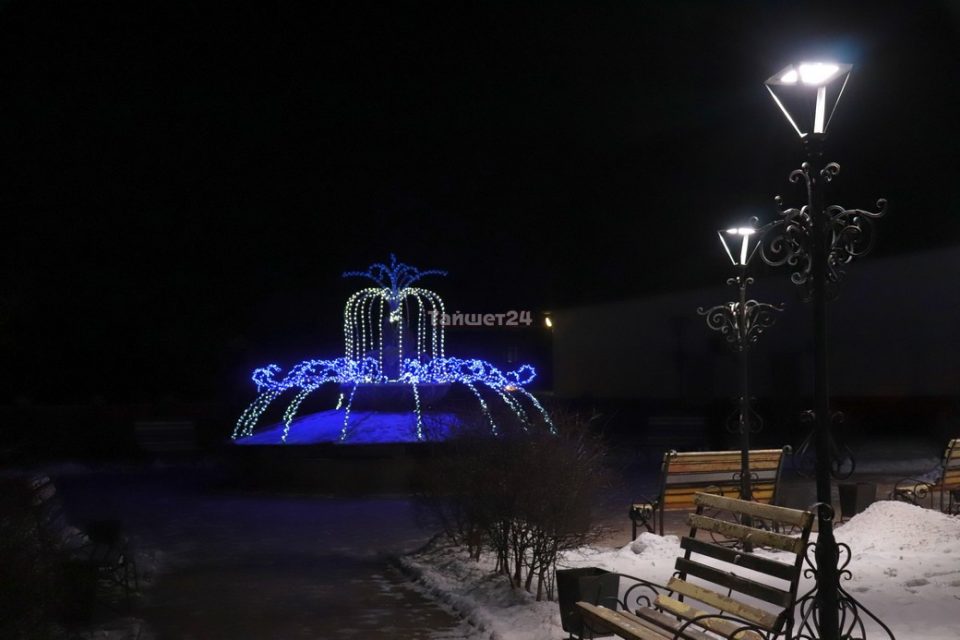 В Тайшете фонтаны у городского парка и на Стройучастке накануне засияли новогодне-торжественными красками.