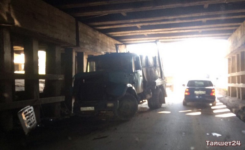 Сегодня в конце рабочего дня в Тайшете мусоровоз врезался в одну из опор в путепроводе, отделяющем…