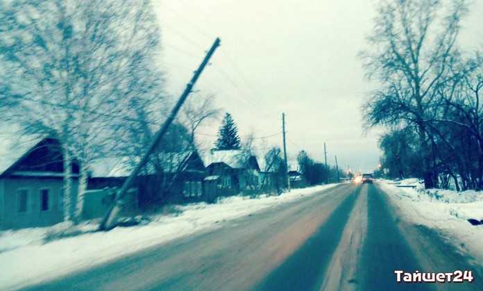 Опора ЛЭП в Тайшете готова рухнуть на дорогу
