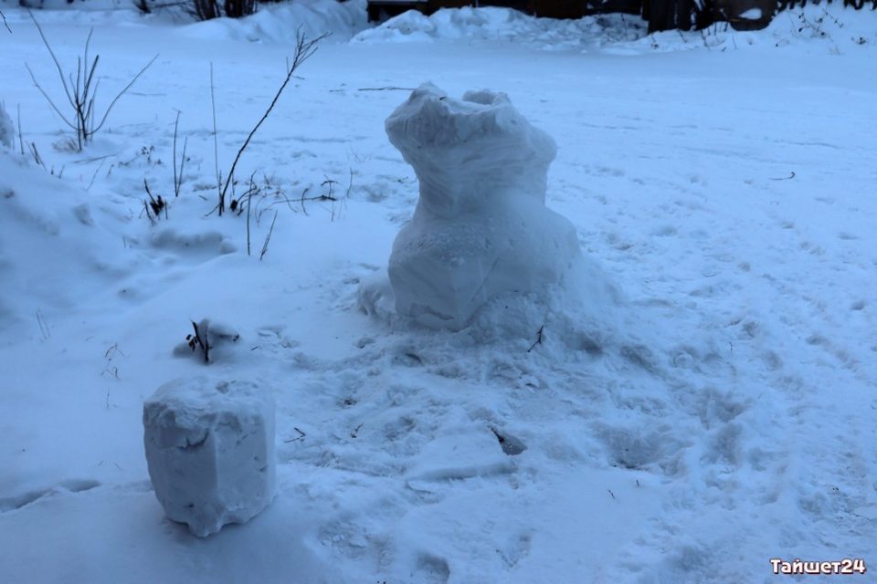 Варвары разломали снежные фигуры во дворе дома по улице Крупской в Тайшете
