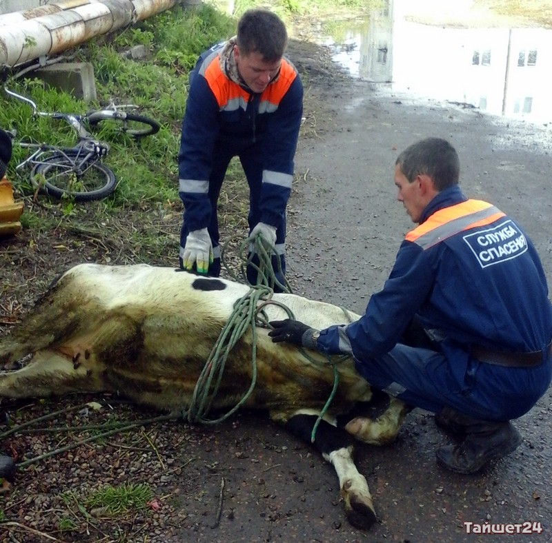 Догулялись. Бродячая корова попала в ловушку в Тайшете