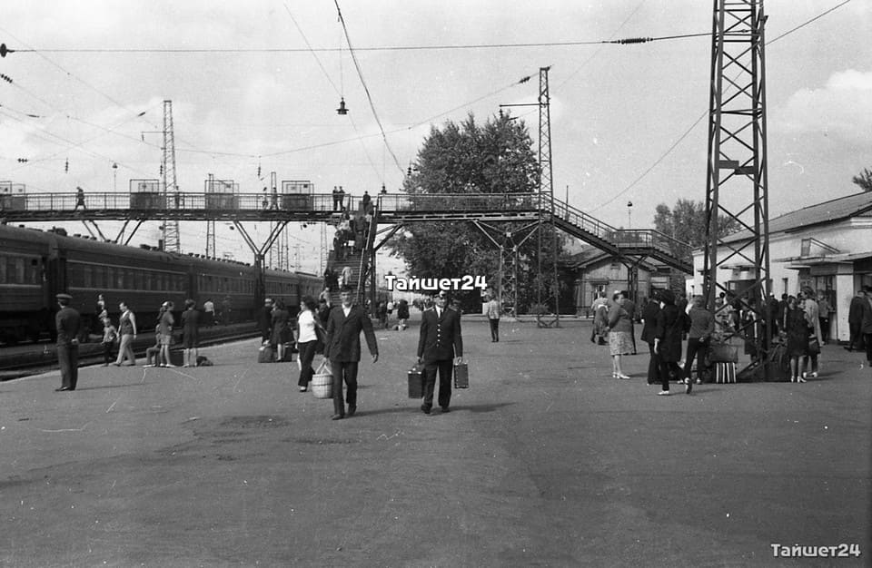 Обычная чёрно-белая фотография, каких много. Но на ней — перрон железнодорожного вокзала в Тайшете. Присмотритесь. Вдали…