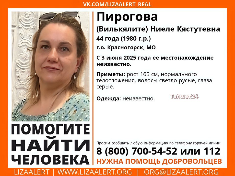 В городе Красногорске Московской области пропала 44-летняя жительница Тайшета Ниёле Пирогова.
