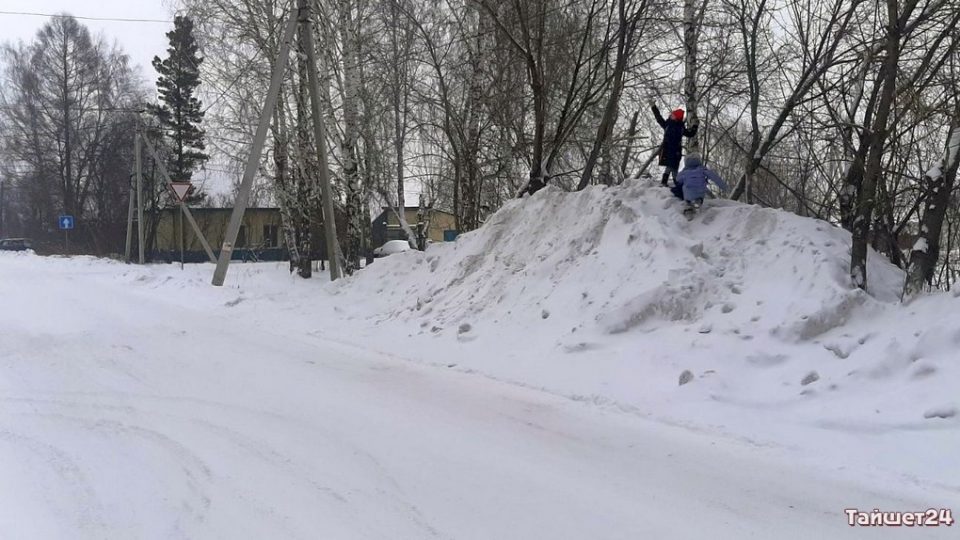 В микрорайоне Пахотищева Тайшета ребятня, рискуя жизнью, превратила кучу снега в горку