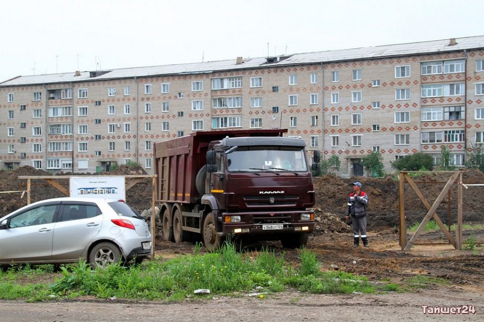 На строительной площадке во дворах домов по улице Зои Космодемьянской в Тайшете, где в итоге должен…