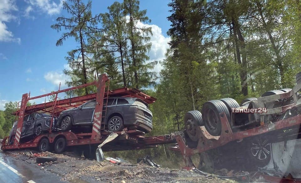 Массовое ДТП с автовозом на трассе «Сибирь»: повреждены 8 новых автомобилей