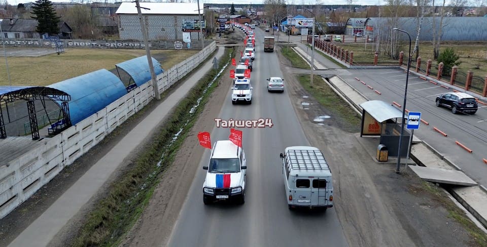 Автомобили УАЗ Патриот провезли по улицам Тайшета 80 Знамён Победы