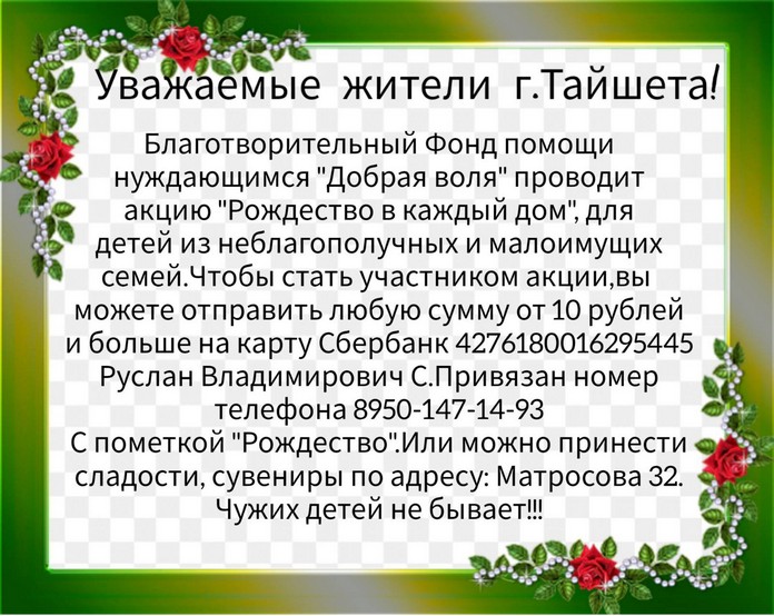 Тайшетский фонд «Добрая воля» проводит акцию «Рождество в каждый дом»