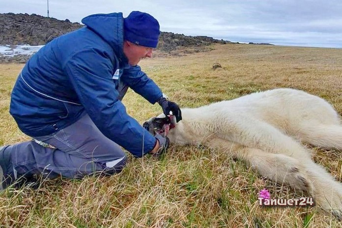 В поселок Диксон Красноярского края пришел белый медведь с застрявшей во рту банкой сгущенки. Спасать краснокнижное…